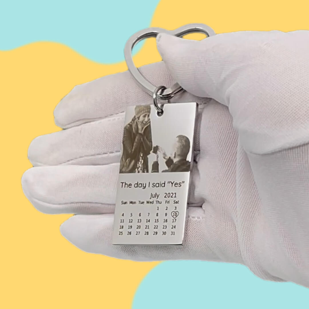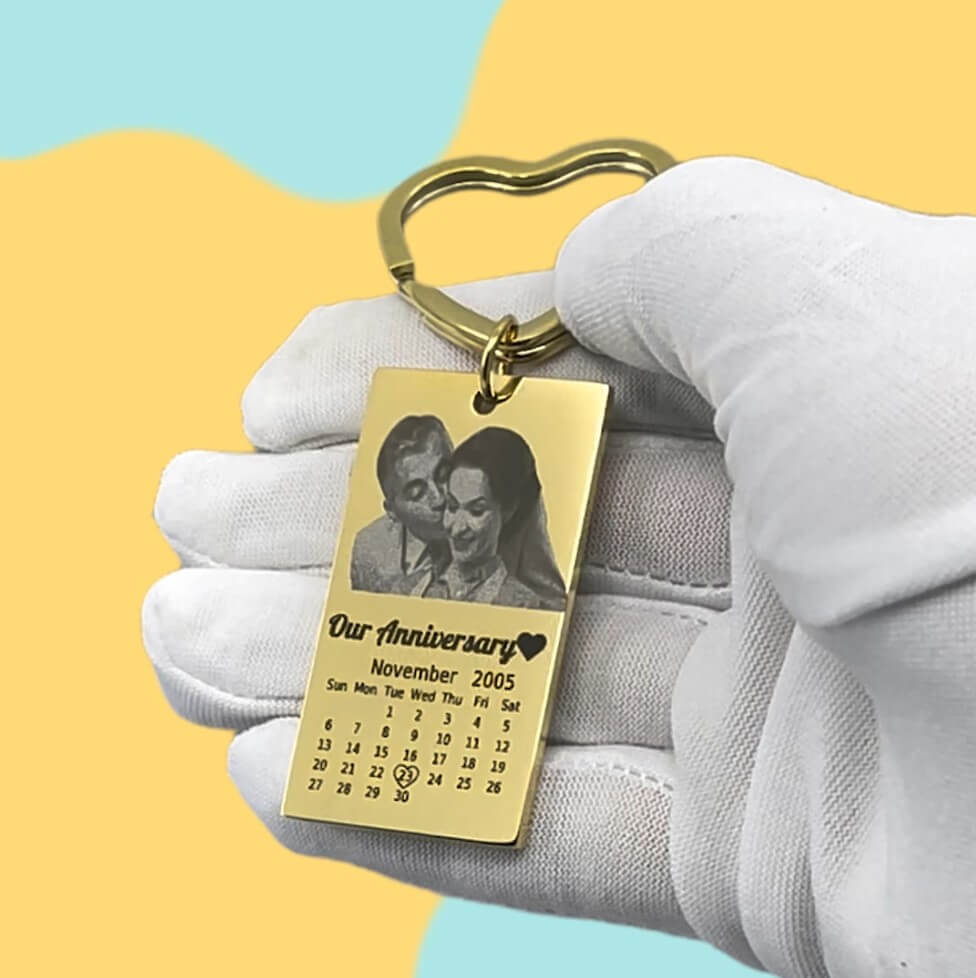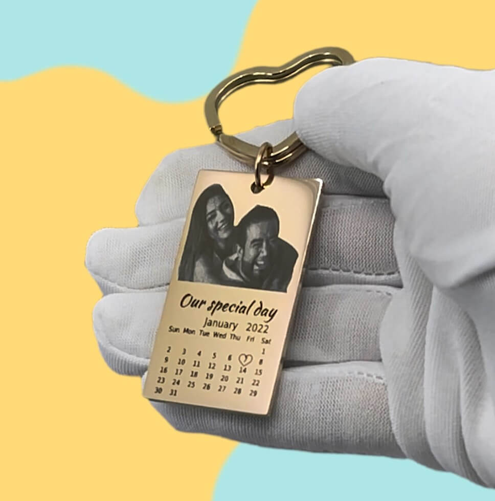 Fasthold og husk dine specielle øjeblikke med vores indgraverede nøglering med foto, tekst og kalender. Denne nøglering har et specialindgraveret billede, tekst og kalender, hvilket er noget helt unikt til dine nøgler. Uanset om det er et billede af en, du har kær, en særlig besked eller en vigtig dato, er denne nøglering en fantastisk måde, hvorpå man kan have disse minder tæt på. Perfekt til enhver anledning og en fantastisk måde at fejre en særlig dato på. Bestil din specialindgraverede nøglering i dag og skab et varigt minde.