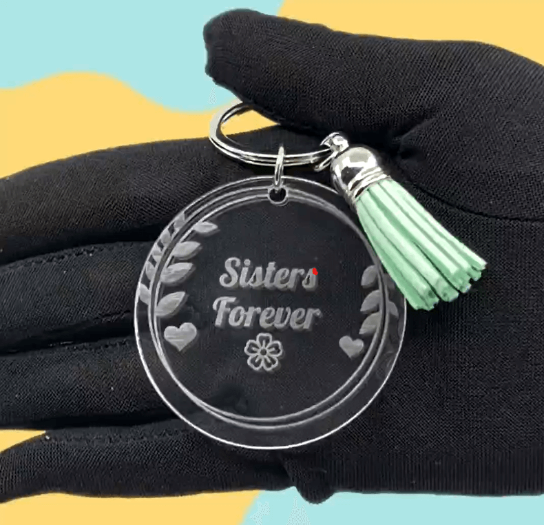 Personlig, Fotoindgraveret Nøglering med to Cirkler