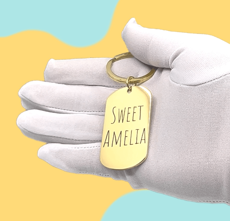 4. Indgraveret med præcision: Din nøglering bliver præcist indgraveret med dine valgte detaljer, med en finish af høj kvalitet.