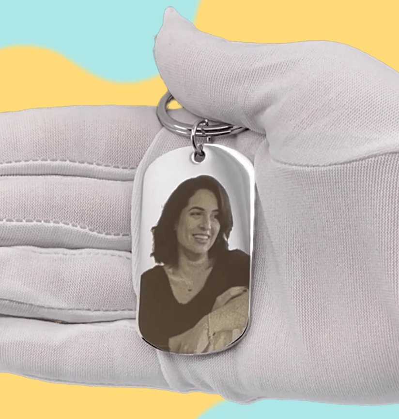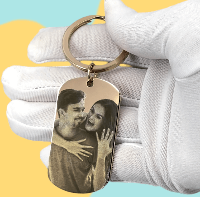 Ær dine minder med vores personlige foto- og tekstindgraverede militærtegn-nøglering. Denne unikke nøglering har en tilpasset billed- og tekstgravering, hvilket gør den til en perfekt, personlig gave til enhver anledning. Uanset om det er til en fødselsdag, et jubilæum eller en særlig begivenhed, er denne indgraverede nøglering en betydningsfuld måde at have sine kære tæt på sig. Den er lavet af rustfrit stål og tilbyder et holdbart minde.