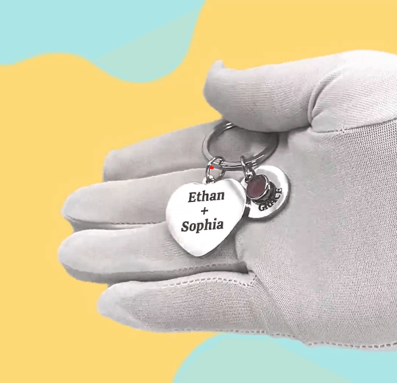3. Personlig ingravering: Vi indgraverer dine valgte detaljer på nøgleringen og vedhænget, med en finish af høj kvalitet.