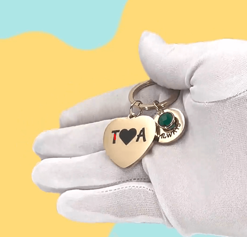 Fasthold essensen af de særlige øjeblikke med vores personlige, indgraverede, hjerteformede nøglering med 1 fødselssten. Med denne unikke nøglering kan du give dine nøgler et personligt præg, hvilket gør det til et betydningsfuldt tilbehør. Fejr de særlige øjeblikke i dit liv med denne nøglering, der perfekt holder de kære minder tæt på som en smuk påmindelse om de betydningsfulde stunder, du har tilbragt med en, du har kær.
