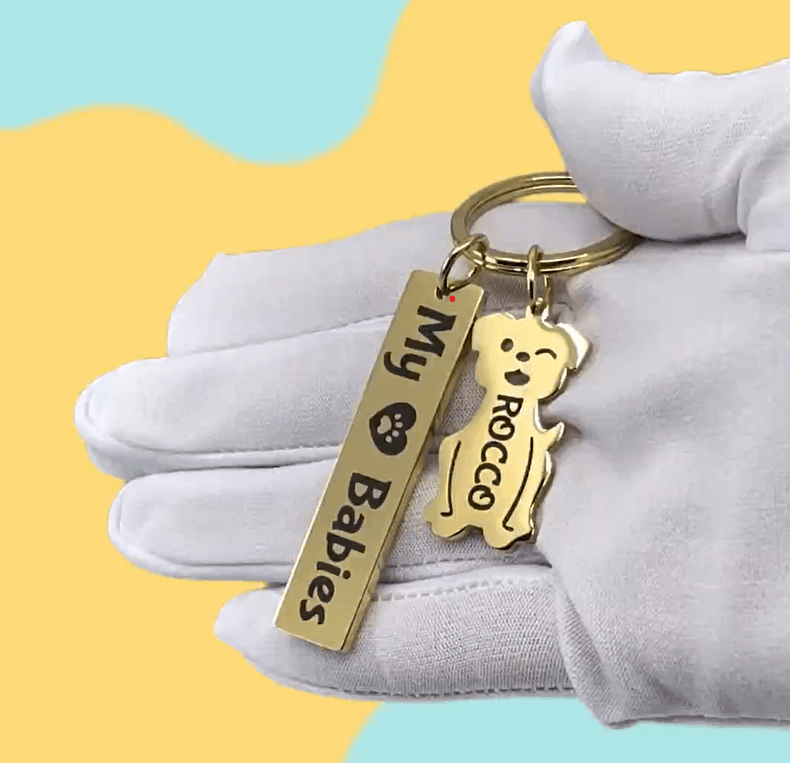 • Personlig, Indgraveret, Rektangulær Nøglering med Hundecharm