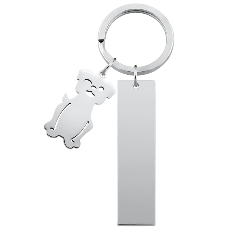 Personlig, Indgraveret, Rektangulær Nøglering med Hundecharm