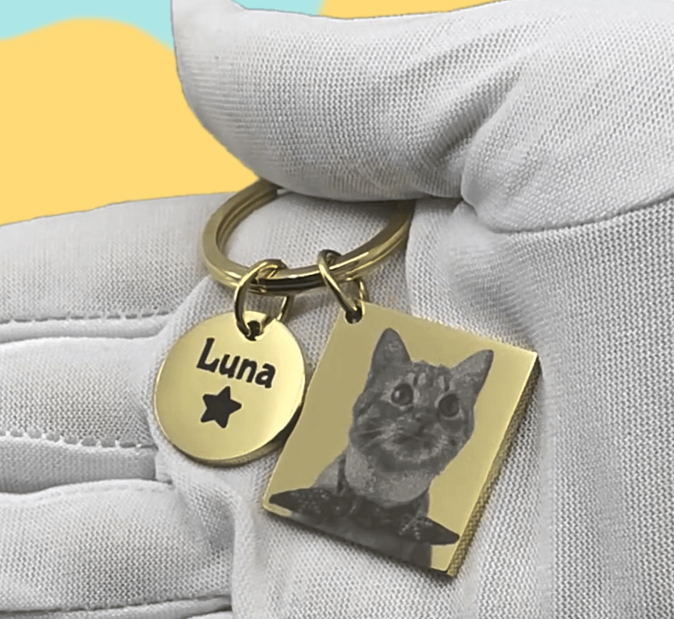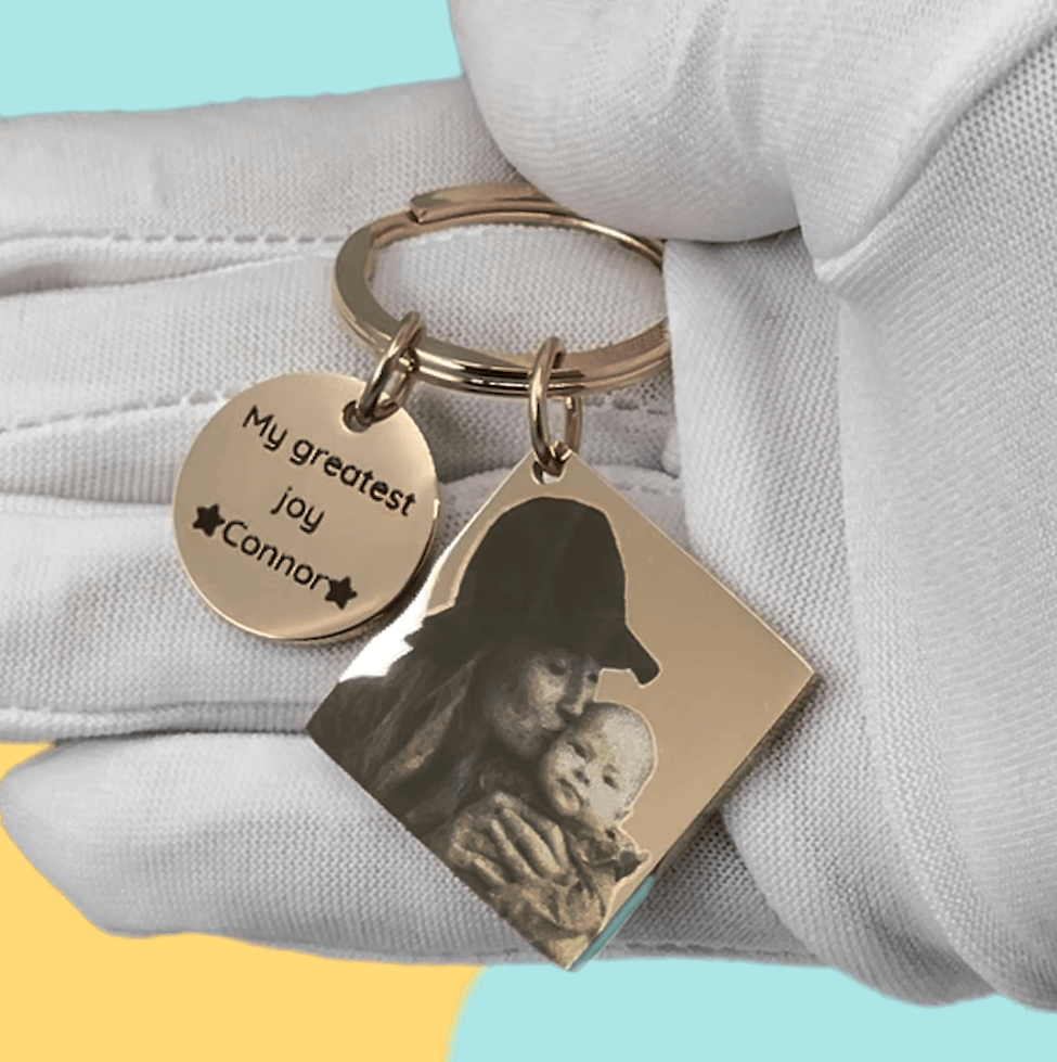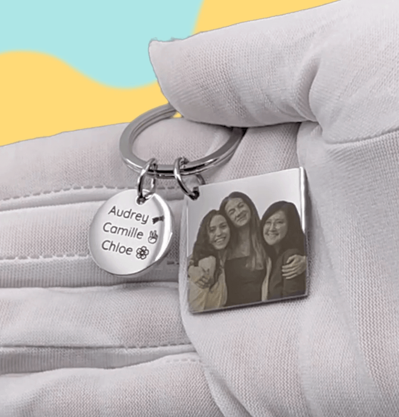 Skab en unik personlig gave med vores Personlige nøglering med firkantet indgraveret billede og cirkel. Denne elegante nøglering giver dig mulighed for at indgravere et personligt billede på firkanten og tekst på cirklen, hvilket gør den perfekt til enhver anledning. Denne tilpassede nøglering er perfekt til fødselsdage, jubilæer, dimissioner, bryllupper, kampagner eller enhver speciel lejlighed, for det er en kærlig gestus, der udtrykker din omsorg.