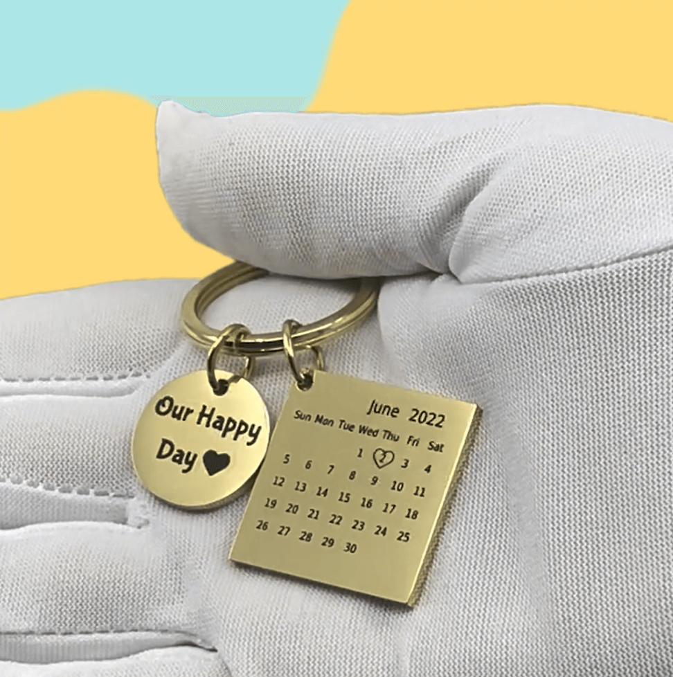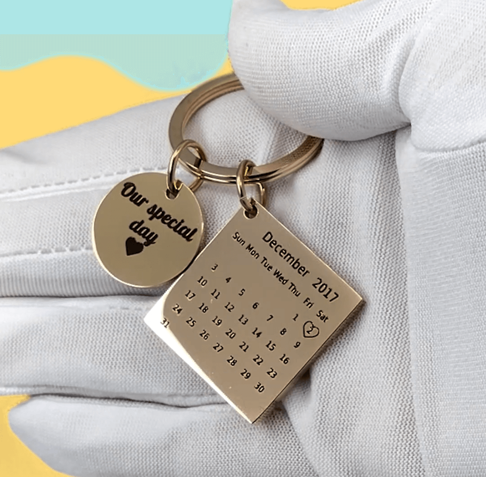 Fejr specielle øjeblikke med vores personlige nøglering med firkantet kalender og cirkel. Denne nøglering er en betænksom og betydningsfuld gave til enhver anledning. Uanset om det er til et jubilæum, en fødselsdag eller en hvilken som helst betydningsfuld dato, er denne tilpassede nøglering en uforglemmelig gave. Bestil din personlige indgraverede nøglering i dag, og giv et varigt minde, der fejrer en særlig dato.